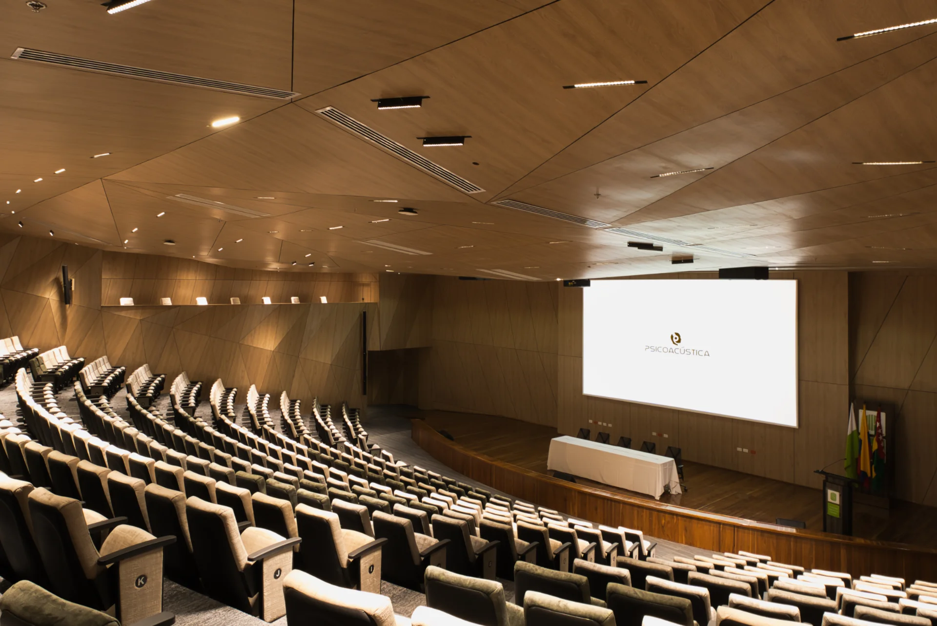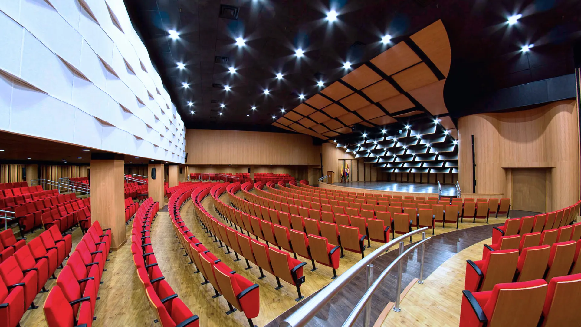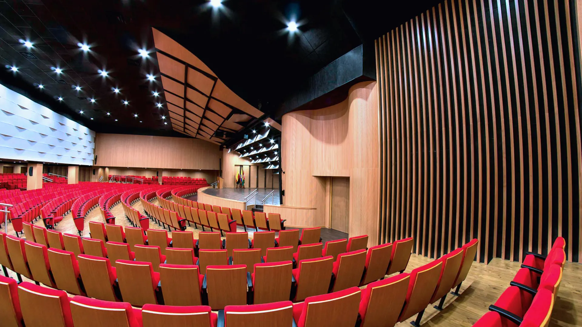 En Psicoacústica, concebimos los auditorios y teatros como organismos sensoriales donde convergen la arquitectura, la acústica y la tecnología para crear experiencias escénicas profundamente inmersivas. Cada espacio es diseñado bajo principios científicos de propagación sonora, percepción auditiva y coherencia visual, garantizando una inteligibilidad óptima, una cobertura envolvente y una estética arquitectónica armónica con su función cultural o institucional. Desde salas de cámara hasta grandes teatros polivalentes, nuestras soluciones integran algoritmos predictivos, modelado acústico tridimensional y tecnologías audiovisuales de última generación, elevando la expresividad del entorno y maximizando el impacto emocional del arte en escena.