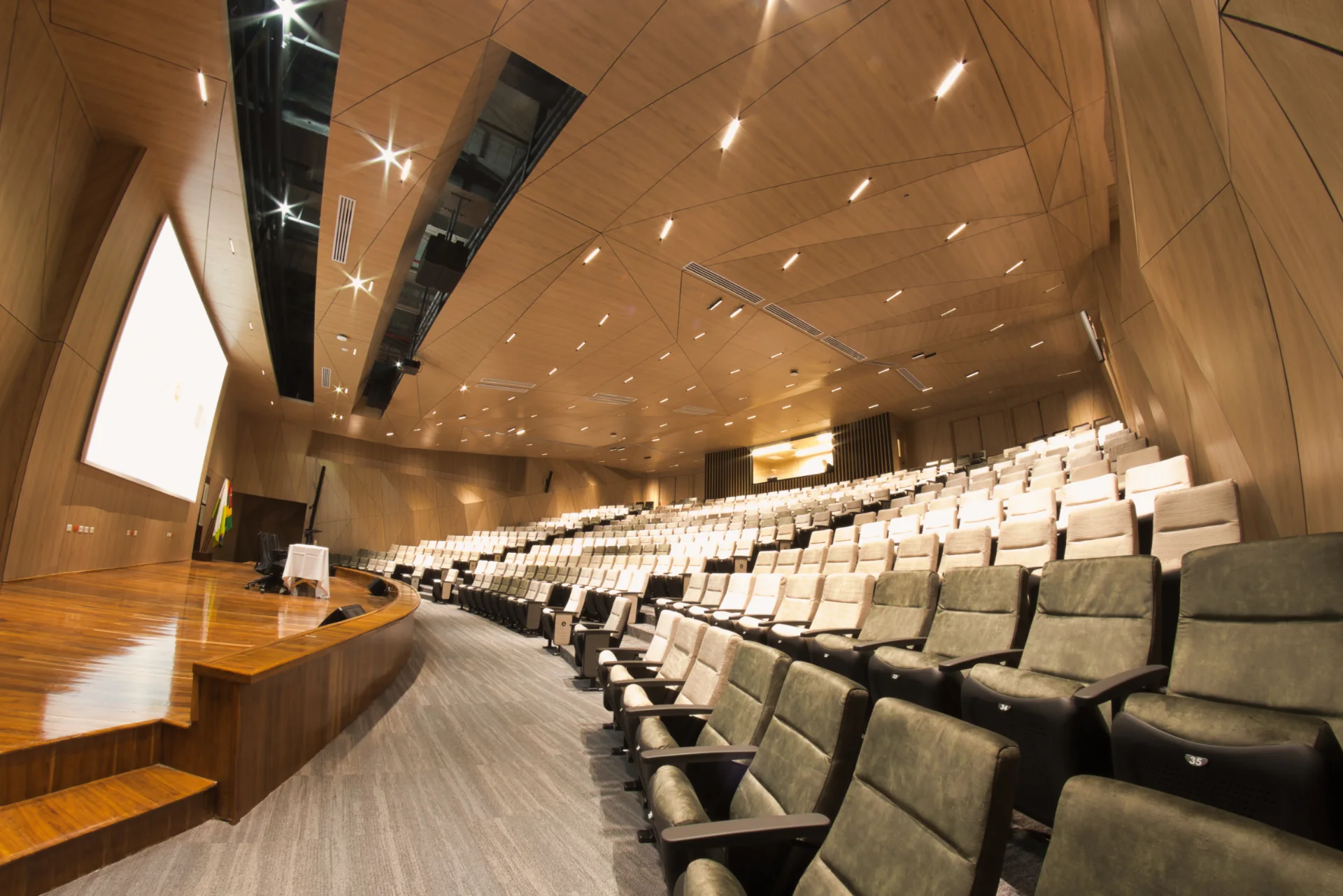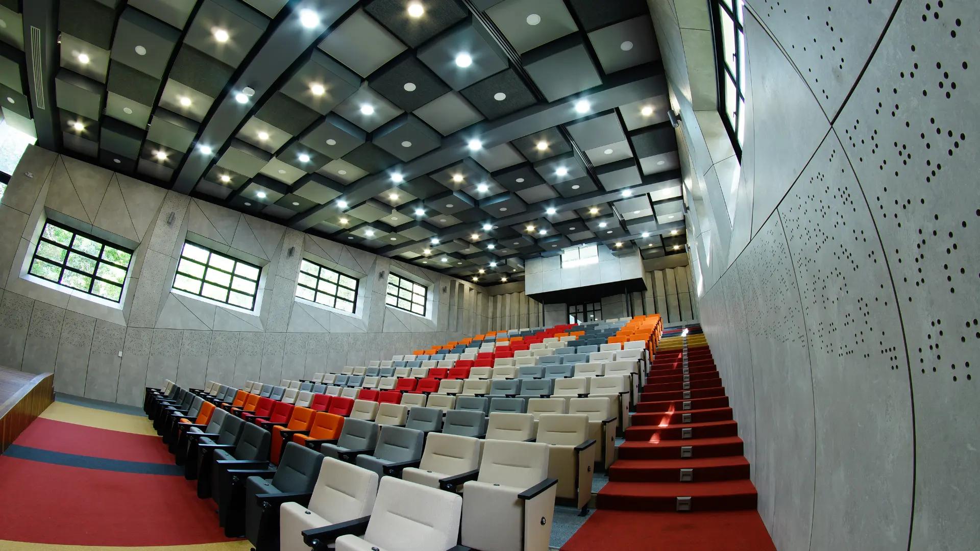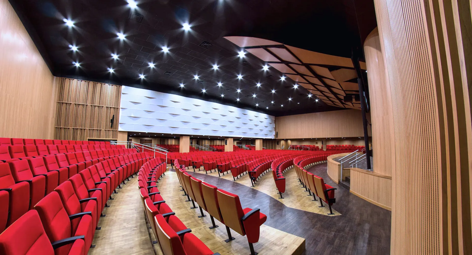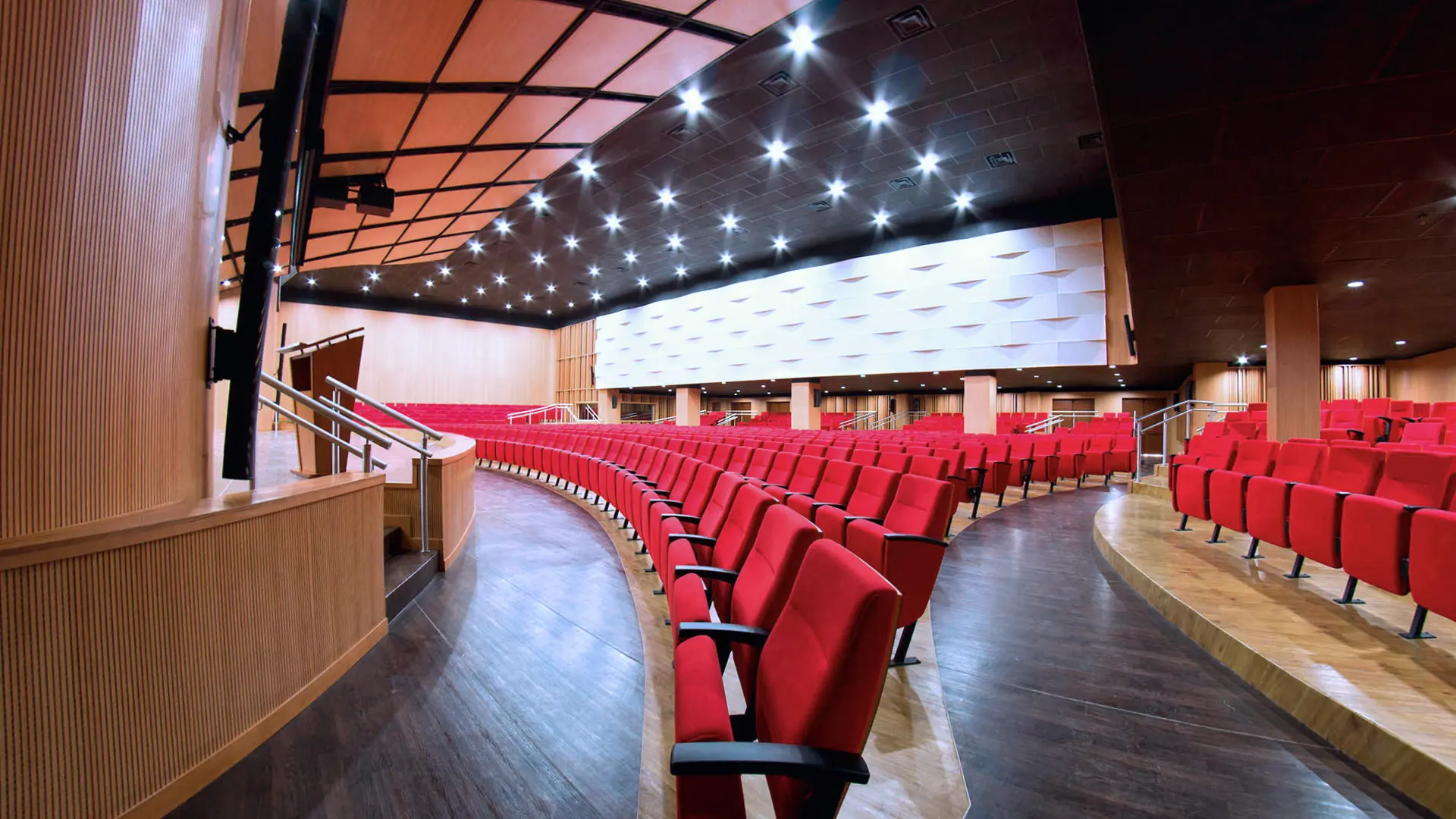 En Psicoacústica, concebimos los auditorios y teatros como organismos sensoriales donde convergen la arquitectura, la acústica y la tecnología para crear experiencias escénicas profundamente inmersivas. Cada espacio es diseñado bajo principios científicos de propagación sonora, percepción auditiva y coherencia visual, garantizando una inteligibilidad óptima, una cobertura envolvente y una estética arquitectónica armónica con su función cultural o institucional. Desde salas de cámara hasta grandes teatros polivalentes, nuestras soluciones integran algoritmos predictivos, modelado acústico tridimensional y tecnologías audiovisuales de última generación, elevando la expresividad del entorno y maximizando el impacto emocional del arte en escena.