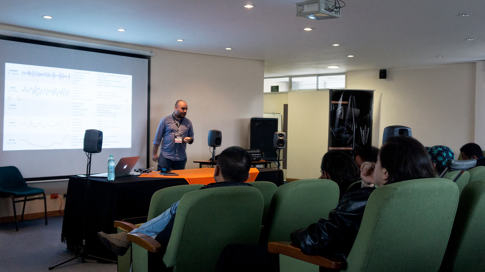 Brindamos talleres y seminarios en temas de acústica, sonido, producción musical, psicoacústica, implementando temas como es la física sonora, sonido análogo y digital, electroacústica, contaminación sonora, ruido ambiental, normativas de ruido, etc...