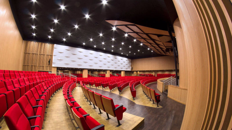 El escenario original se convierte en gradería, el nuevo gira 90º con un tamaño de 130 m² y la nueva sala tiene una capacidad de 800 sillas.